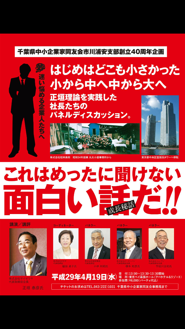 4月19日には、株式会社サイゼリヤの正垣泰彦会長の講演会があるそうなので、こちらも楽しみです。